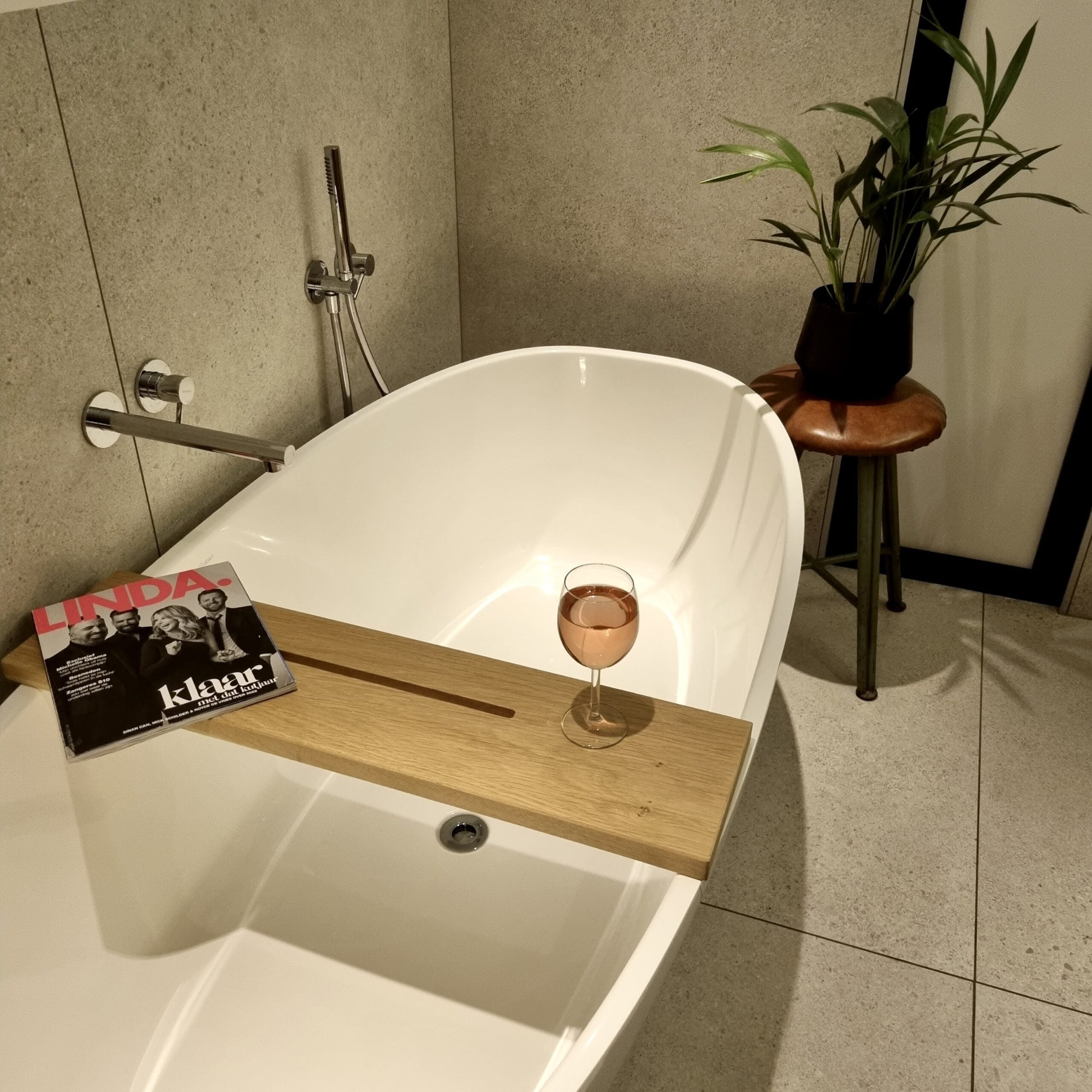 Lekker in bad liggen met filmpje op je tablet? Dat kan met De Slimme Badplank Basic! De Badplank is rondom gelakt. Je kunt de plank omdraaien zodat de gleuf uit het zicht verdwijnt. Gemaakt uit een massief eiken plank van +- 3 cm dik.
