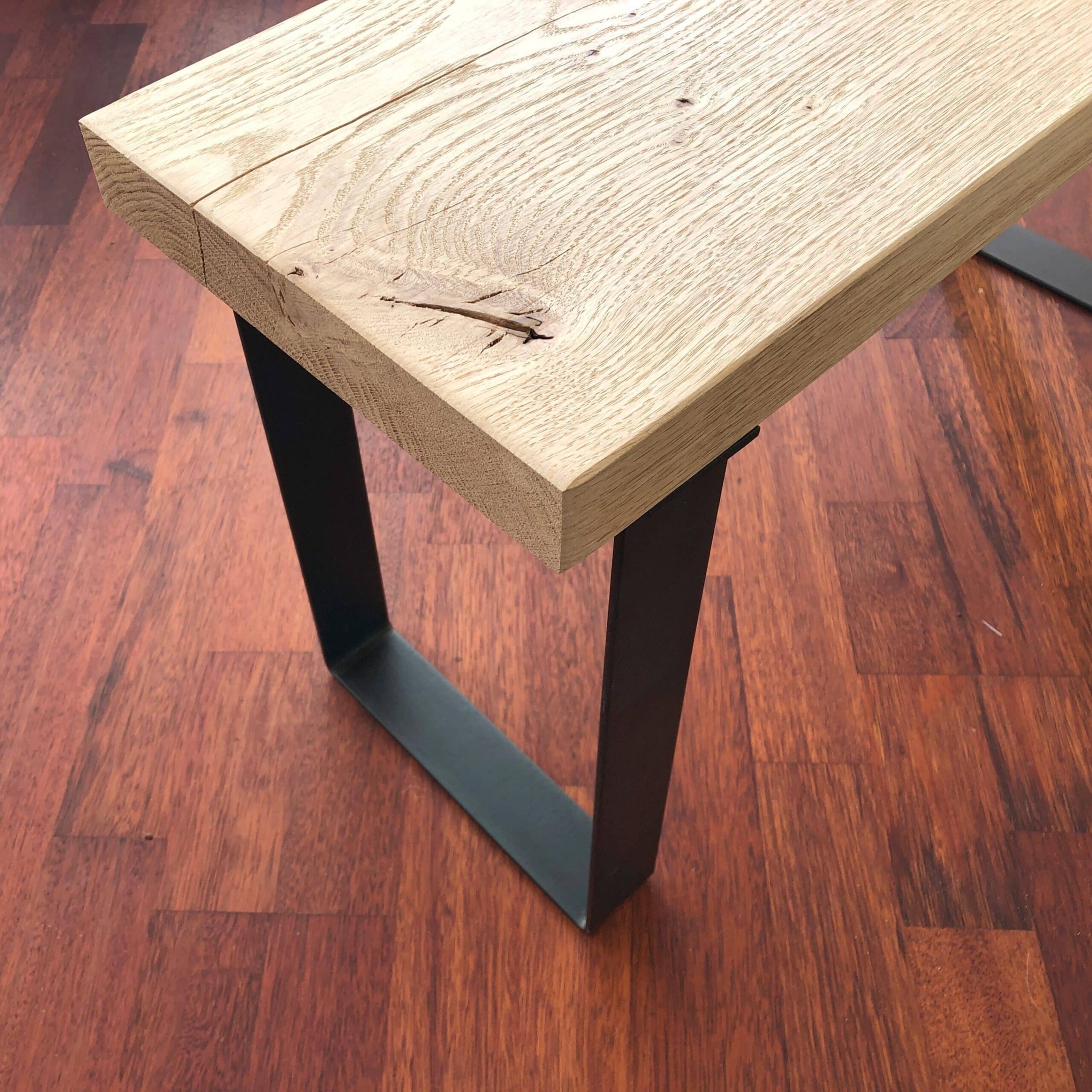 Heb je een hoekje waar je een tafel op maat nodig hebt? Bijvoorbeeld naast de bank, in de hal of als sidetable op een kale muur? Dan is de Slimme Bijzettafel net iets voor jou! Deze stoere tafel bestaat uit een onderstel van staal en een eiken plank op lengtemaat. Oerdegelijk Hollands vakwerk, speciaal gemaakt voor GoudmetHout. Je kunt kiezen tussen een laag en hoog model. Tip: koop een set, dan kun je ze slim onder elkaar schuiven.