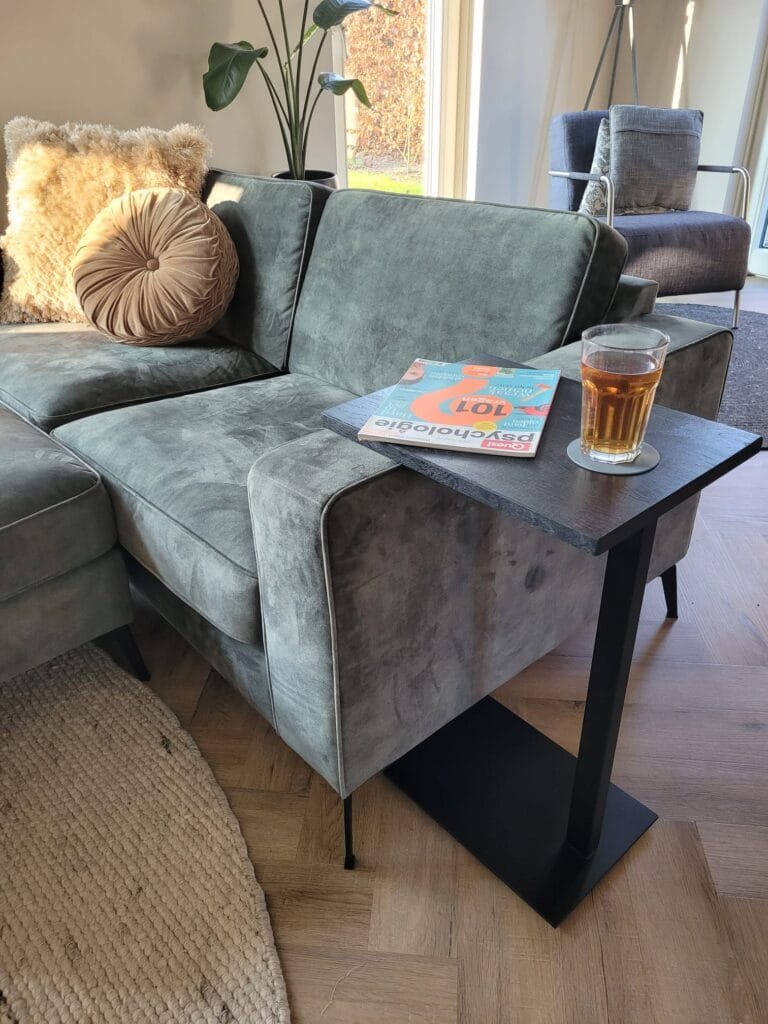 Een sidetafel kenmerkt zich door zijn compacte formaat en flexibiliteit. Door de beperkte diepte neemt de tafel weinig ruimte in, terwijl hij toch functioneel blijft.