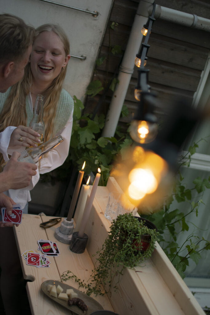 Zo blijft je balkon ook na zonsondergang een fijne plek om te zitten.