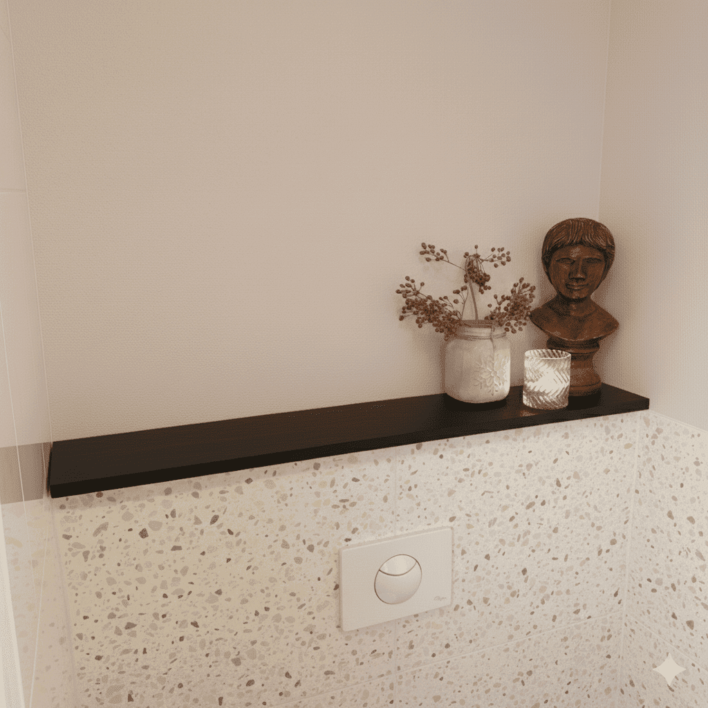 Onze eiken toiletplank met rechte rand van 20 mm is precies wat je zoekt. Deze dunne, elegante plank geeft je toilet nét dat beetje extra sfeer, zonder overheersend te zijn. Perfect voor op het muurtje boven je toilet: een praktische én sfeervolle toevoeging. Je bestelt de houten wc plank op maat in zowel lengte als diepte, zodat ’ie altijd perfect past. De dikte van deze variant is 20 mm, wat zorgt voor een slank en subtiel uiterlijk.